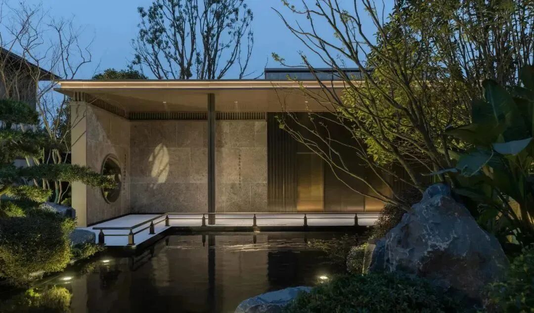 长沙电建 · 泷悦长安示范区从宋代造园及建筑技艺中提取元素,将叠山理水、亭台楼阁、甚至草木铺装、栏杆家具等做现代化演绎;在传承中寻索现代设计语言,将文化意蕴渗透现代生活场景。