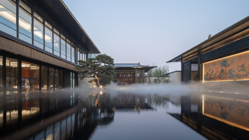 设计师汇聚唐代与现代多种风格符号,去契合唐朝自由浪漫的生活意境,重构文化、城市、自然与人的关系,長河明月以象取意,让那些读过唐诗、看过唐画听过的唐史的文化伴随者们只需稍稍点拨,就能体味这其中的美学意境。