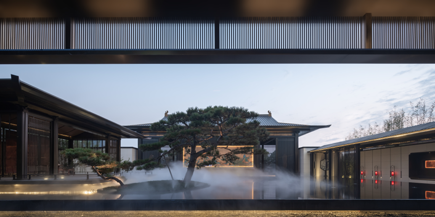 空间布局上借用中国古典园林步移景移的造园方法,传承中式传统庭院的空间布局,逐步展开空间序列,打造四进院落的空间礼制,空间层层递进,以雅致五景营造传统园林的意境。