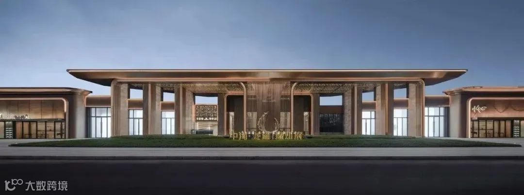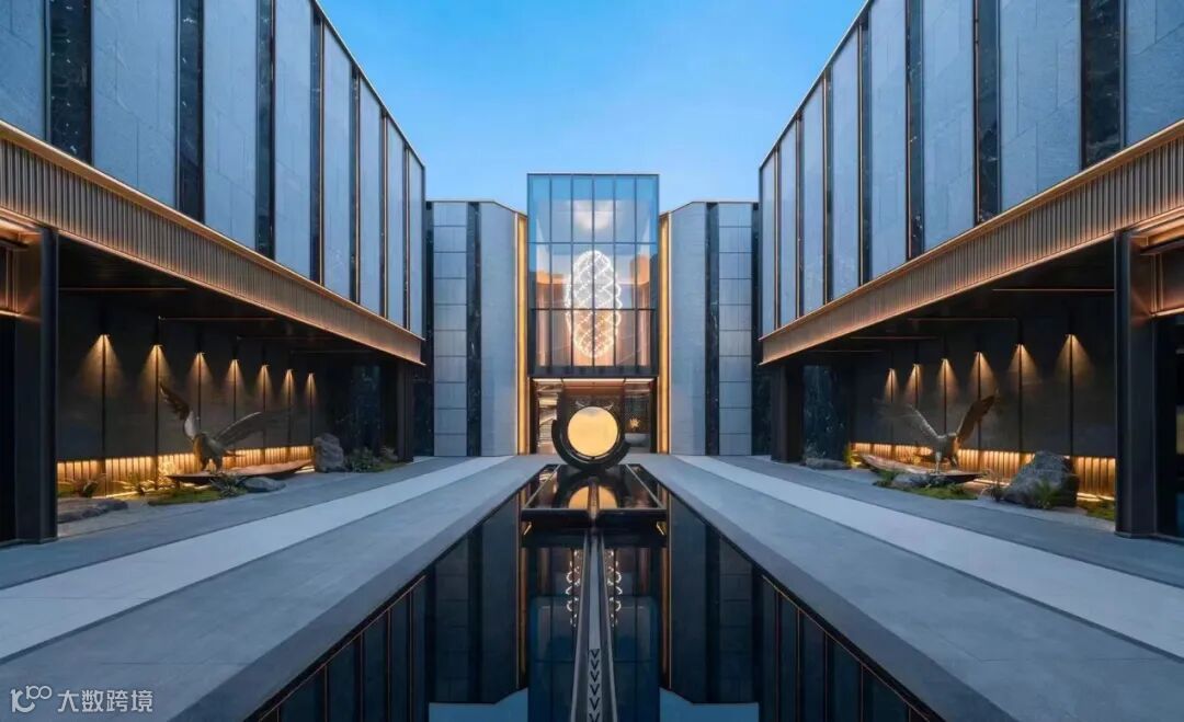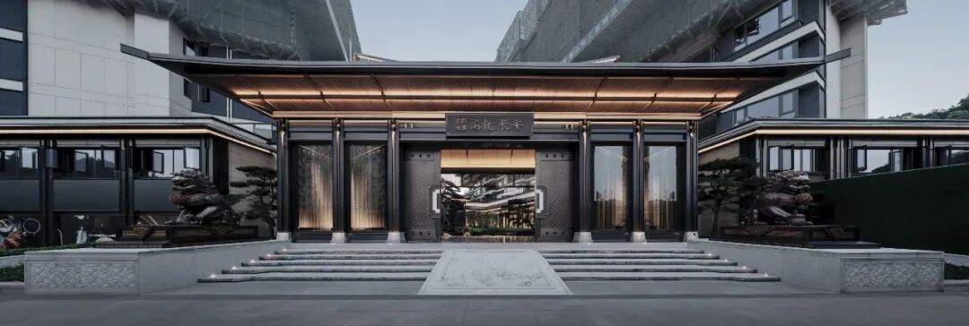 项目入口60m超尺度的界面,9m的净高,“五进宅、九开间” 的建筑型制,是中国古建的最高格局,体现了至高的尊贵感。