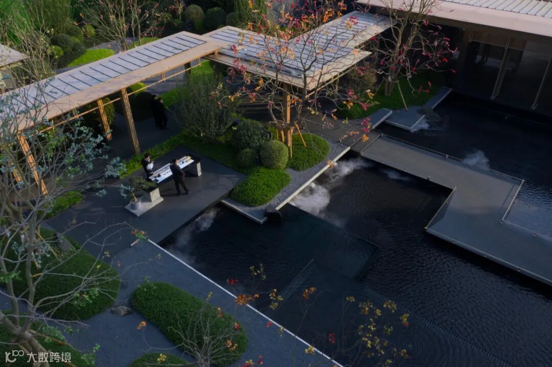 孤品日本黑松结合精致动态水景,定格场地的崇安情怀。