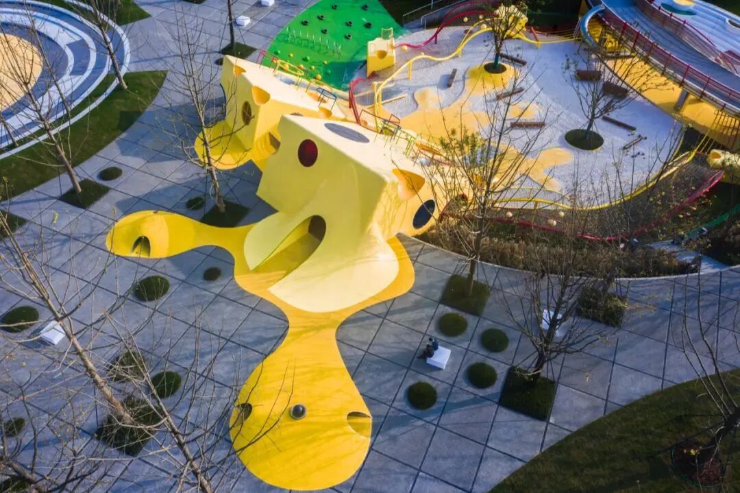幼儿园出入口外置的儿童活动场地,作为社区对外开放的亲子活动空间,吸引周边居民,赋予了场地鲜活的生命力。
