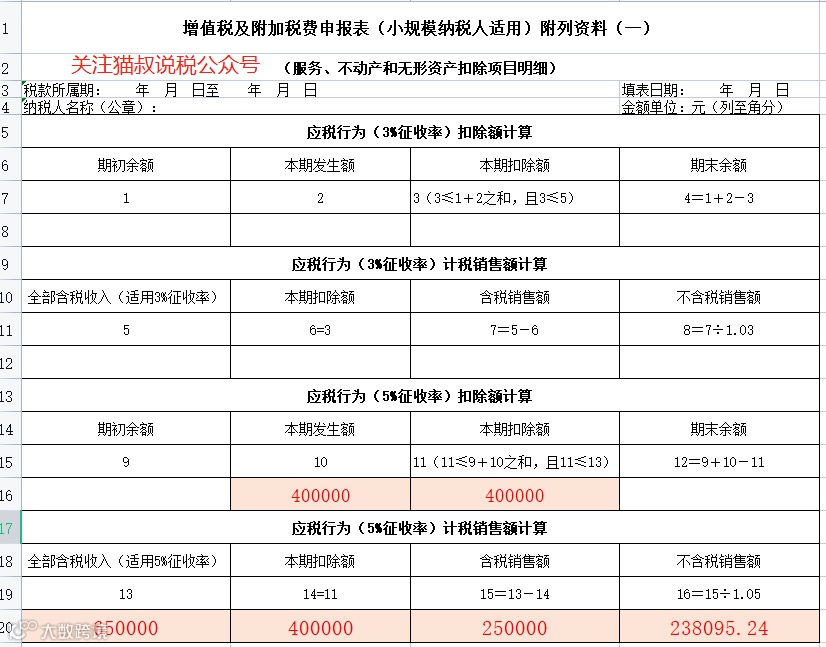 附列表填写后保存,返回主表:打开增值税申报表,我们便可以看到,附列资料——“应税行为(5%征收率)计税销售额计算”第16栏“不含税销售额”(238095.24元)已自动带入到主表。检查无误之后,点击保存,提交。