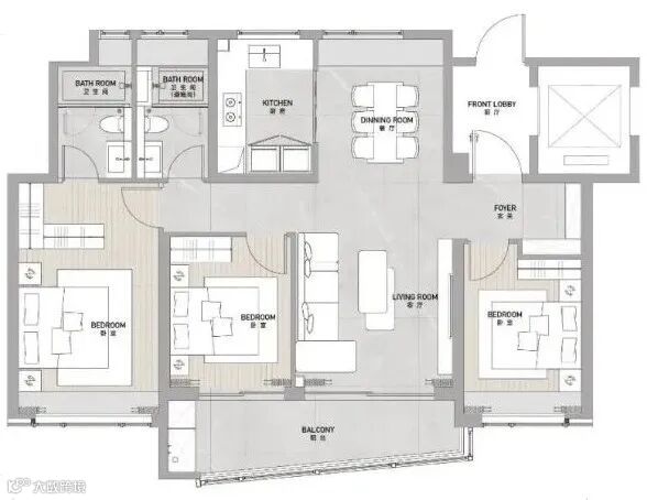 在高层的户型设计中,基于南北通透的板楼设计,所有户型都在三面宽以上,超大景观阳台,明朗生活尽数抵达。