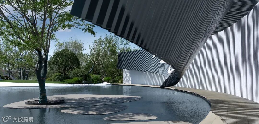 营销中心造型灵感则取自宇宙虫洞,寓意现代时空与前沿未来,春水行云就像城市空间的虫洞,过去、现在、未来都被它的引力强力焕活着,“虫洞”的打造理念,赋予建筑超越时间和空间的深意。