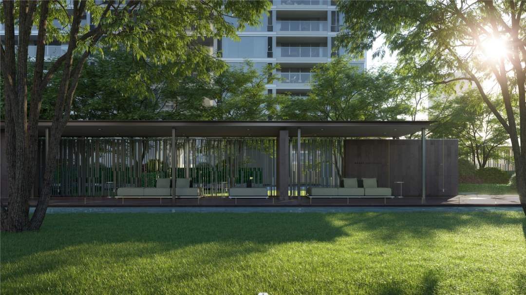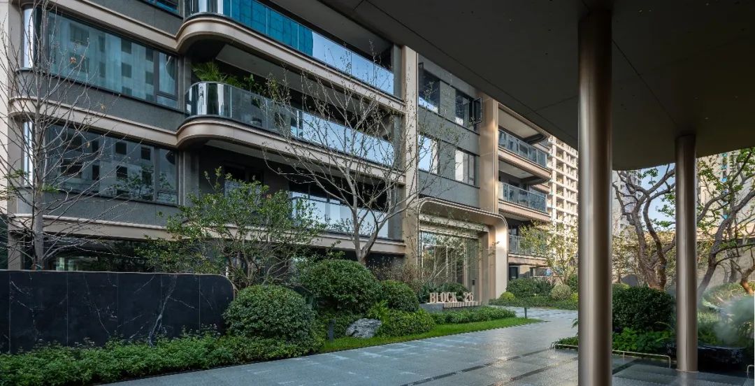 瑞府以高墙大院隔绝城市的喧嚣,以秘境公园构筑独特的城市风景线,同时以酒店化的落客区以及风雨连廊系统,串联起客户归家的整体空间序列,并在景观中植入典藏会客厅,形成居家日常与礼仪传承的完美融合。
