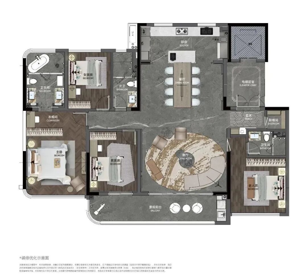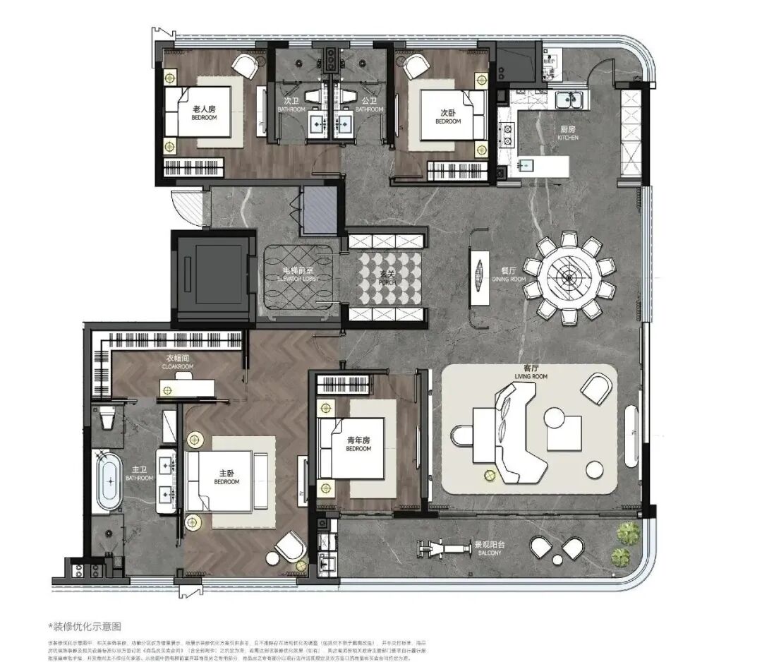 武汉华润瑞府280㎡户型,从户型布局到室内设计,无一不展现了华润置地对武汉高端人居生活方式的思考。