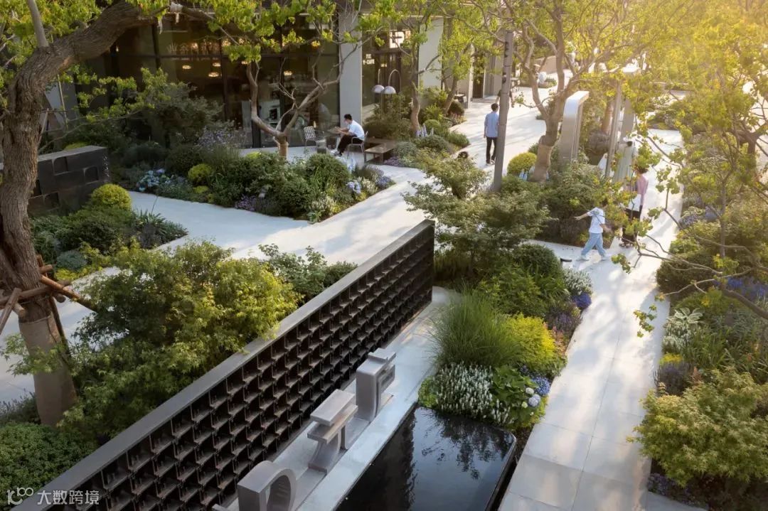 干净利落的曲线和疏密适当的植物配置,适当软化边界的同时又不喧宾夺主,草坡、树林与观赏草形成绿色空间,让人们在欣赏建筑的流畅简洁之余,也会流连于植物和建筑所营造的舒心氛围。