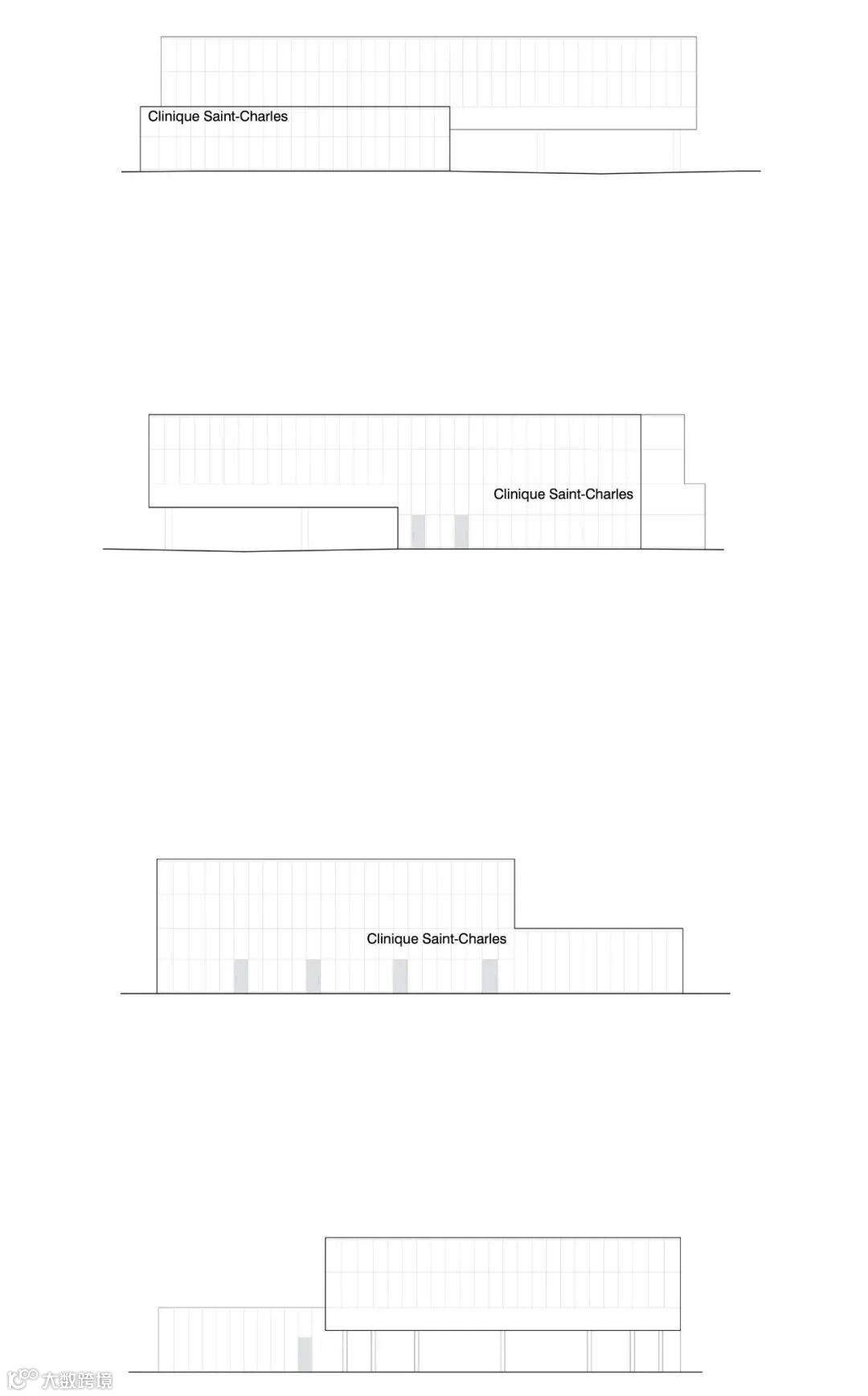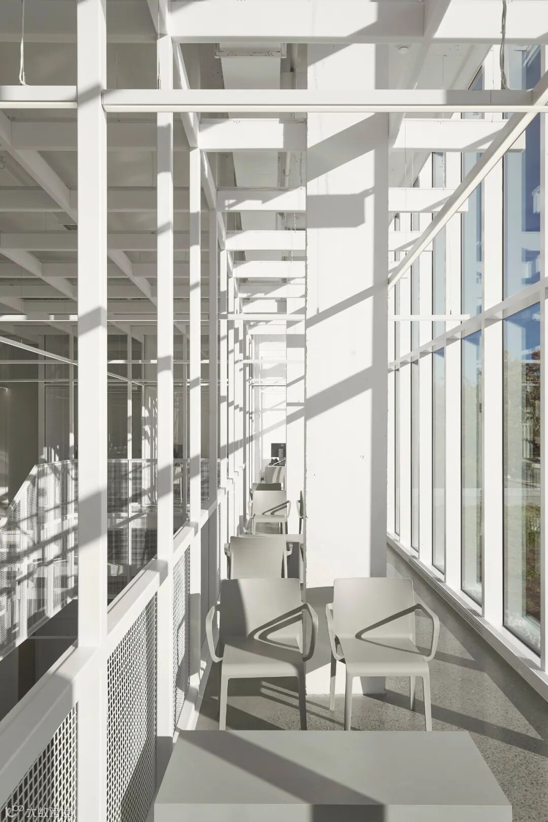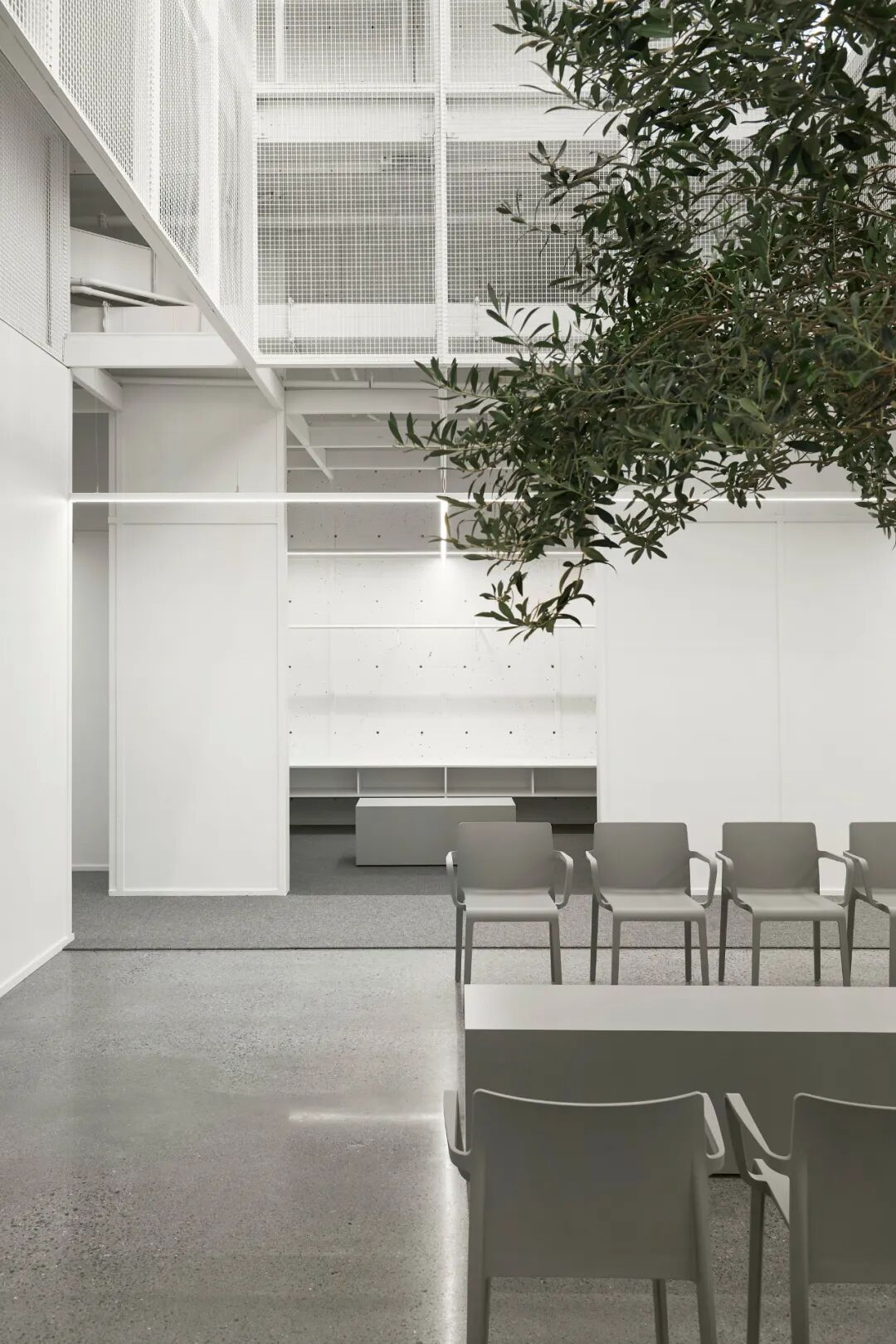 框架的衔接产生了影子游戏,与建筑元素相结合,显示出一种唤起大自然丰富的视觉诗意。这些策略被用来强调内部和外部之间的对立,并通过对比和逆光来优化白色的主导地位感。除了建筑上的表现力,该诊所还通过增加绿地和邻近建筑的形象,使之和谐地融入其所在区域,形成一种和解的镜像效果。