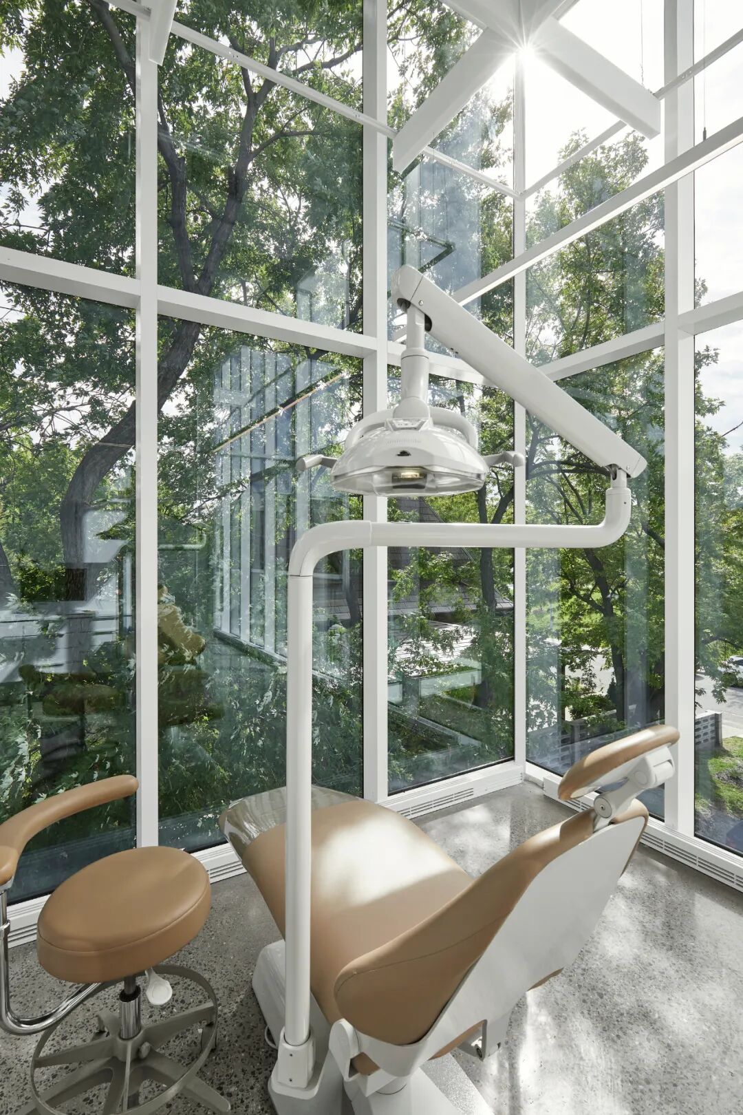 Responding to the needs of Dr. Anh Tuan Nguyen and his team - mainly to have a light and airy clinic - while also respecting the philosophy of 'minimal means for maximum effects', the Studio favored a simple intervention based on the ingenious use of materials and meticulously executed construction methods. Clinique dentaire St-Charles presents an architecture that highlights the green spaces and activities of adjacent Catherine-Primot Park, as well as the urban vitality of this coveted sector of the City of Longueuil.