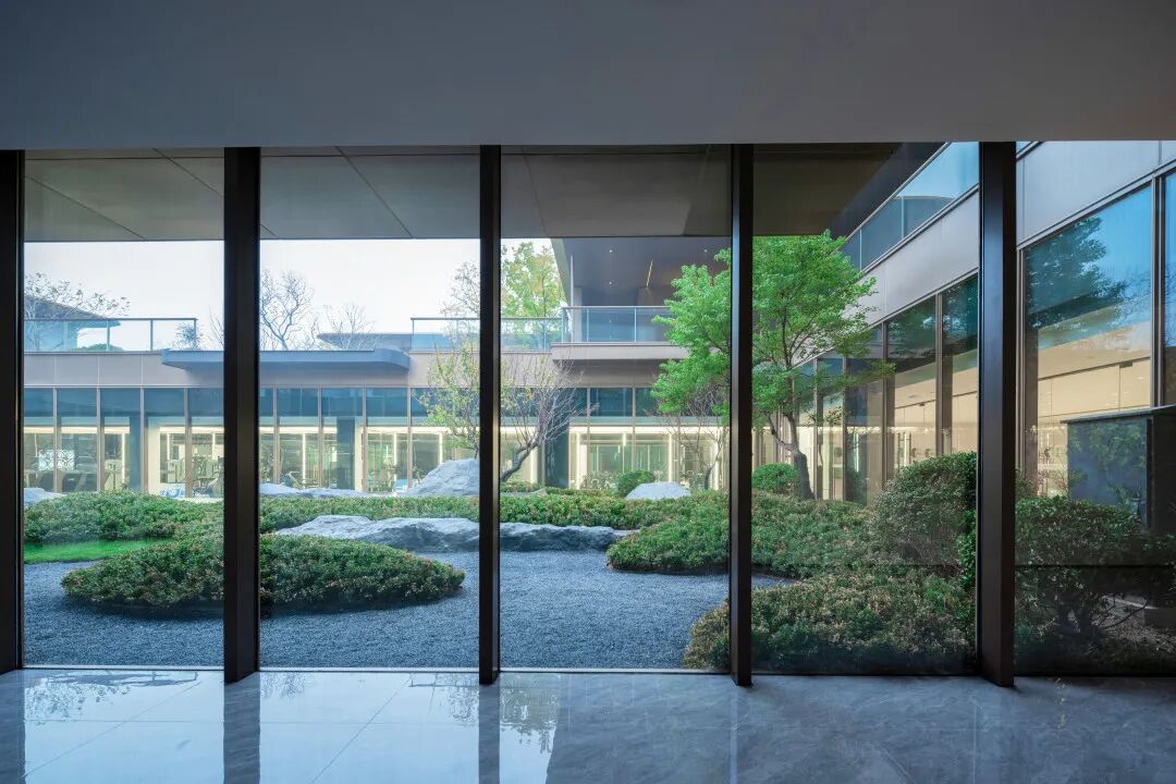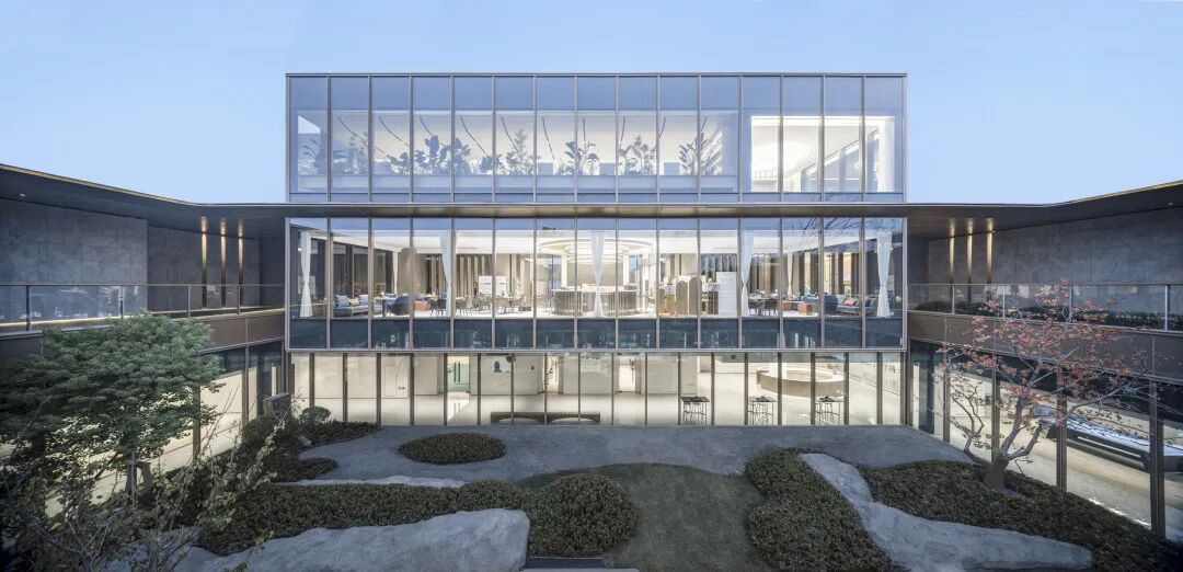 下沉庭院将后场园林景观延伸至建筑空间中,建筑与自然,人与景,观者与被观者,共存于亦动亦静的空间之中。从室内到室外,从地面到地下;巧妙消隐了空间意义上有形的“界”。