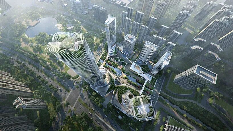 Sustainability is also a priority for UNStudio’s design. The proposed design aims to be a landmark in sustainability and future-proof design in China. The office towers will use prefabricated components as well as a modular supporting structure, and Building Integrated Photovoltaic (BIPV) solutions installed on the roofs of all buildings will meet the daily energy demand of the buildings and reduce operation and maintenance costs.