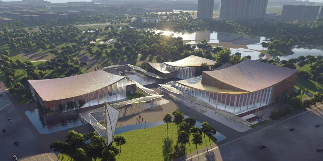 河南武陟是黄河文化之乡,武陟三馆一中心(中标方案)项目位于其老城区边缘的覃怀公园内,包含图书馆、博物馆、文化馆、融媒体中心、工人文化中心等多个功能。