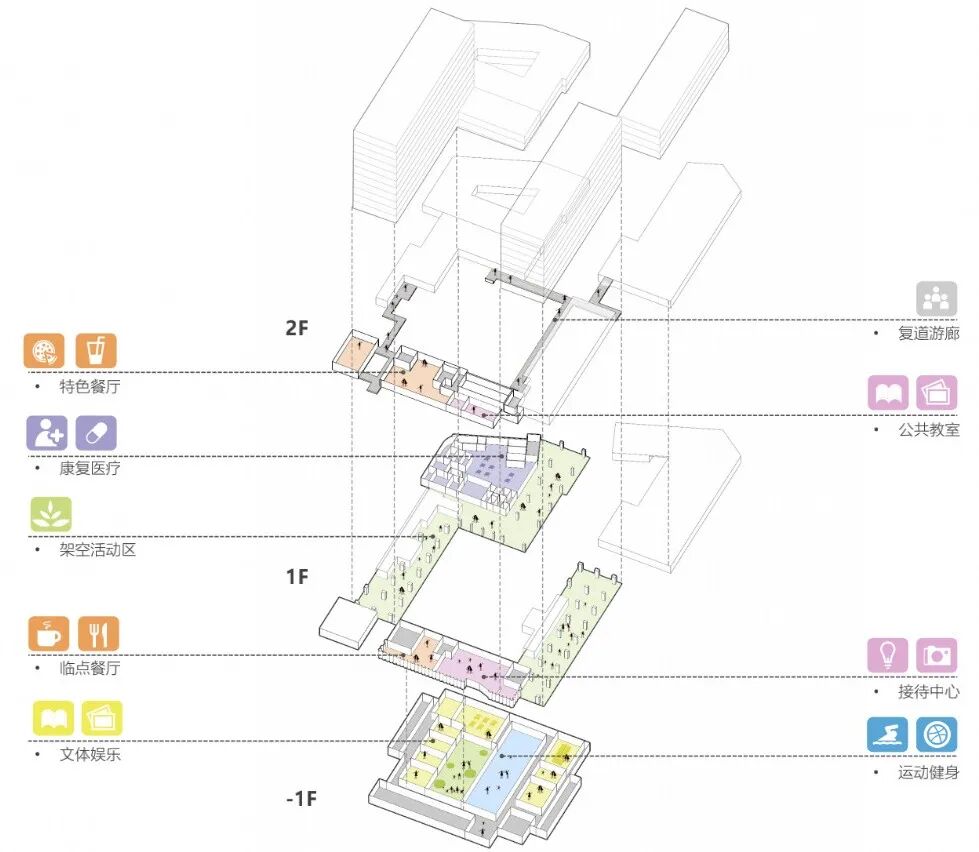 事实上,适老化的考量可能是最基础的内容,而我们更关注规划的布局,建筑呈现的空间场景是如何被积极地去使用的;如何去鼓励使用者主动自发参与到整个社区中去,而不是被动扮演一个“被服务者”。