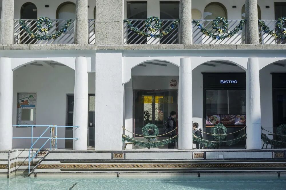 与海军俱乐部相联通的游泳池,改建中以保护为前提,提升建筑的安全性与舒适性,保留了至今为数不多的英制马赛克贴面泳池(42×100英尺)。