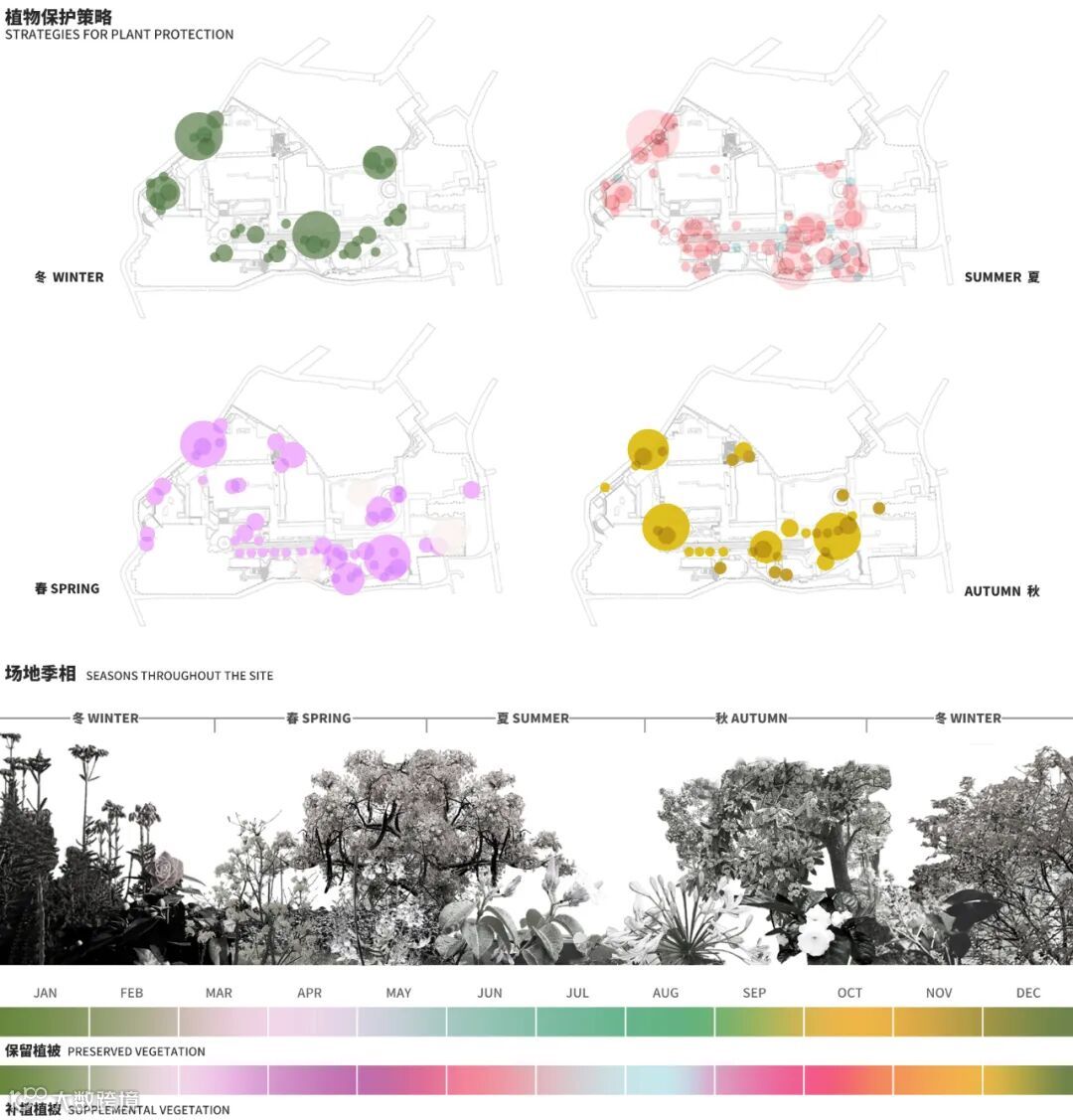 了解场地生态现状,梳理场地中值得保护的内容,明确适用于该场地的植物物种,构建丰富的植被结构层次,提升场地生物多样性。