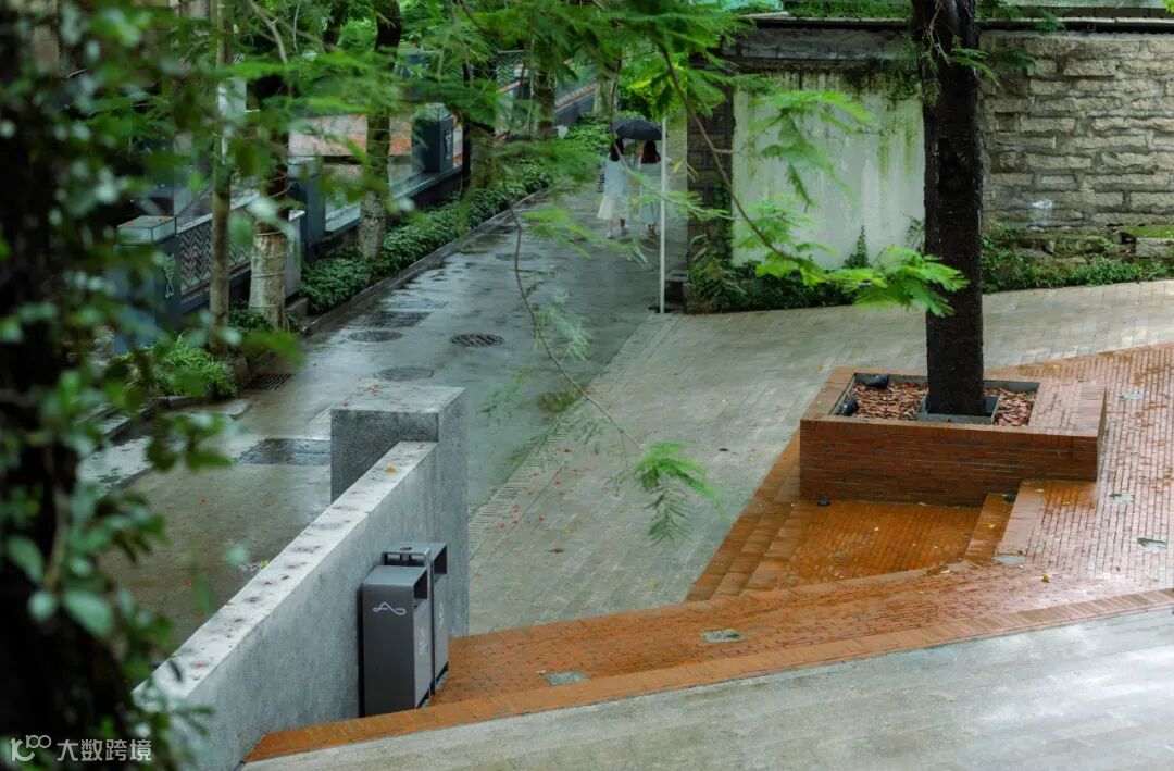 设计保留了场地北侧的古榕树,修复和清理树池,并以古树为中心组织空间布局,景观和建筑相互协调,利用地形、体量和植被创造出一个动态的公共空间,让古树和周围新建环境形成对话。