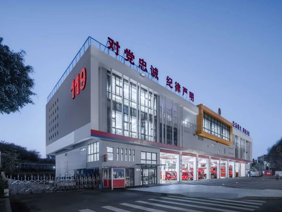 区别于传统消防站,新型消防站是在消防站建设工程加紧进行之下,高效、迅速地建设合理、完善的消防站。新型消防站之间有共性、有个性。“个性化”是比“标准化”设计更为人性、合理的设计。比如北站消防站,临近高铁线路与国防交通应急保障基地,场地紧张,因此采用远离高铁线、避让国防基地的“集中式”布局,为消防员改善居住品质、提供更多活动场地。
