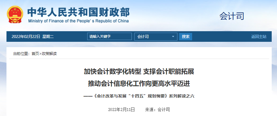 业财一体化是大势所趋?我们先来看看财政部发布的《会计改革与发展“十四五”规划纲要》通知。