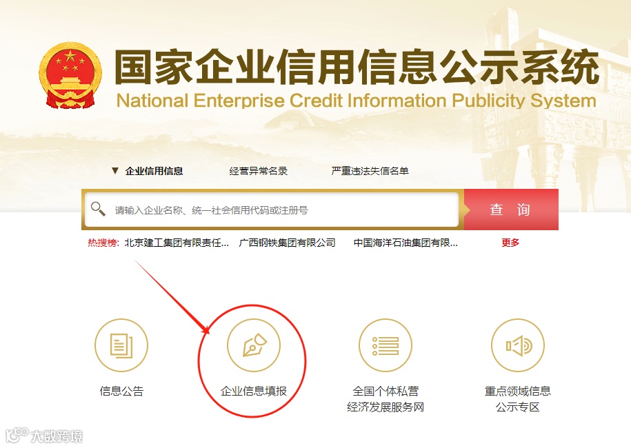 ①登录国家企业信用信息公示系统,点击【企业信息填报】