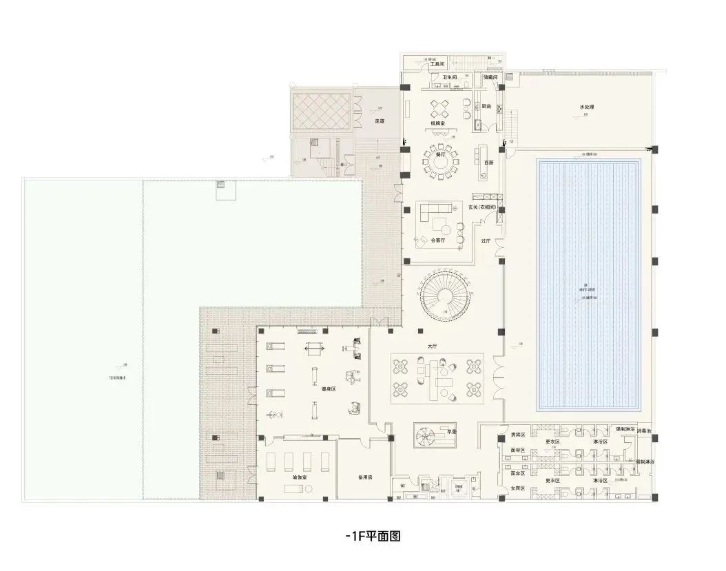 △ -1F健身房、恒温泳池与下沉庭院充分互动