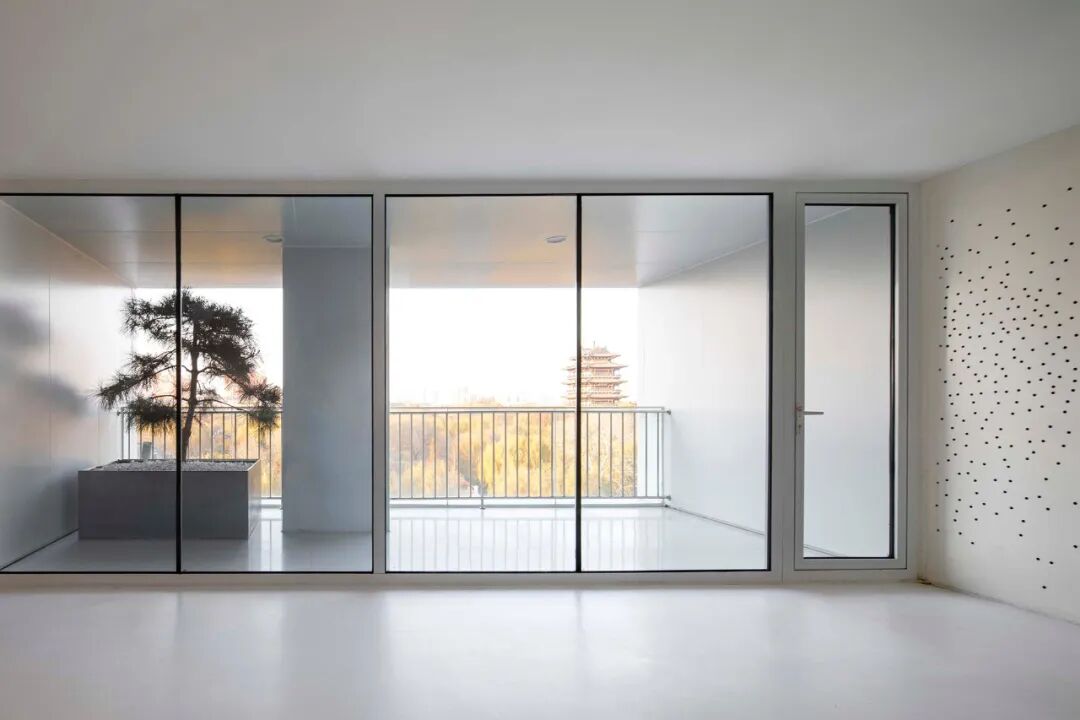 The building is a reinforced concrete frame structure, and the floor slab adopted a prestressing system. Low floor heights and the lack of connection among floors shackle the openness and freedom that art spaces should have. From the inside out, we reorganized the building's function, creating freedom and proper variation of the interior space, thus affecting the facade and connecting with the open view of DaMing Lake.