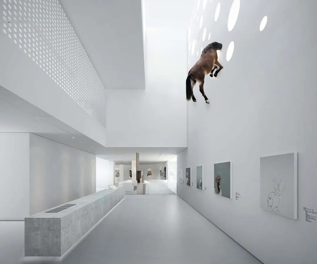 At night, interior lighting shines through surface holes and openings, rendering the entire building warm. Due to the staggering and continuity, the internal become both independent and mixed, forming a three-dimensional, abundant, open, and free art life experience center.