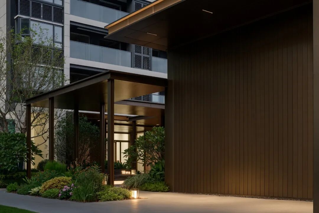 入户标识与入户门头进行呼应统一,体现精工质感的同时又彰显低调细节。