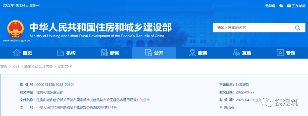 现批准《建筑与市政工程防水通用规范》为国家标准,编号为GB55030-2022,自2023年4月1日起实施本规范为强制性工程建设规范,全部条文必须严格执行。现行工程建设标准中有关规定与本规范不一致的,以本规范的规定为准