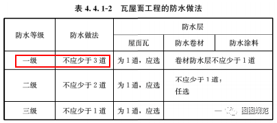 • 屋面防水一级时,要3道防水
