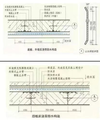 后浇带止水板防水构造示意图