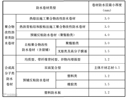 3.3.11  反应型高分子类防水涂料、聚合物乳液类防水涂料和水性聚合物沥青类防水涂料等涂料防水层最小厚度不应小于1.5mm,热熔施工橡胶沥青类防水涂料防水层最小厚度不应小于2.0mm。