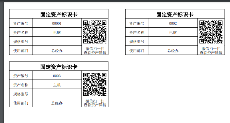还可以打印固定资产标签和二维码出来,贴在资产上面方便盘点..….