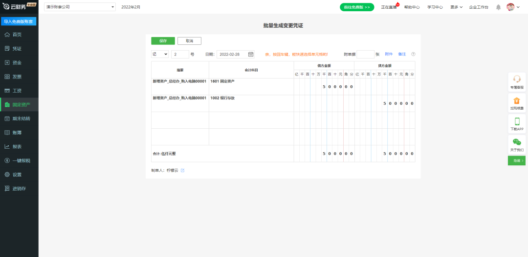 只需导入或录入固定资产新增信息后,以后所有的每月折旧、变更、报废等都是批量处理完成,每月自动生成折旧凭证,那效率是杠杠滴……..