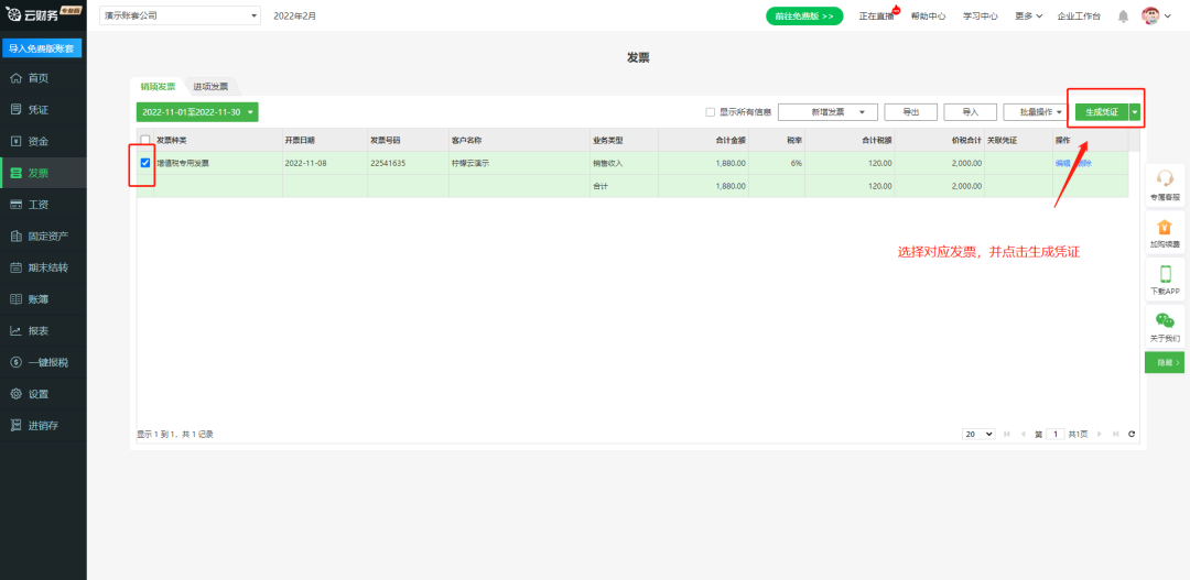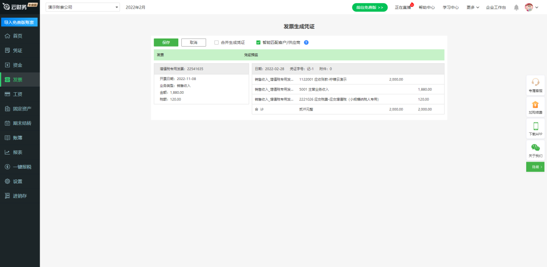 如果你的企业的发票张数较多,一张张录入做凭证,或汇总再做凭证都有些麻烦,那就用上专业版【发票模块】: