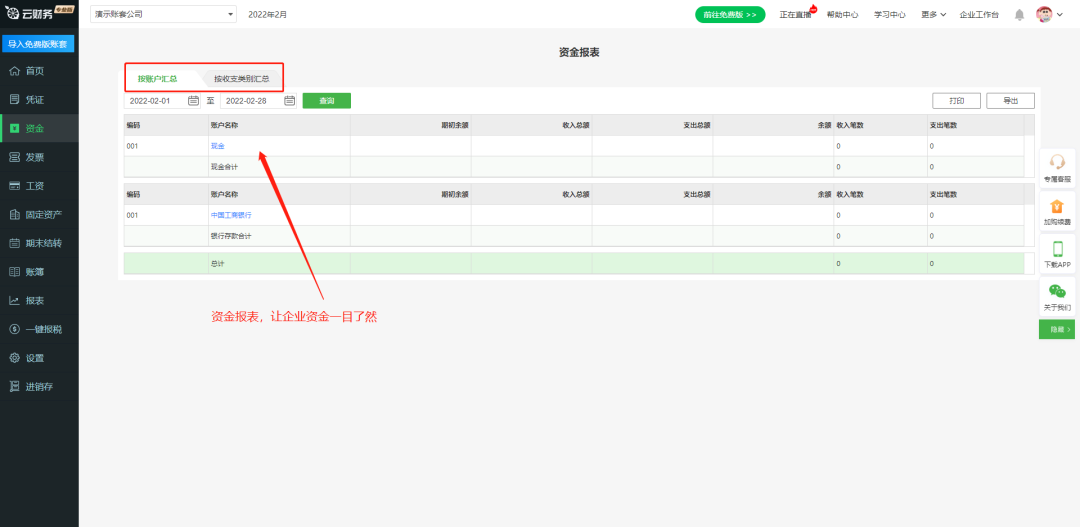 如果你企业资金流水笔数较多,银行账户比较多,老板要求实时了解资金状况,那就用上专业版【资金】模块,