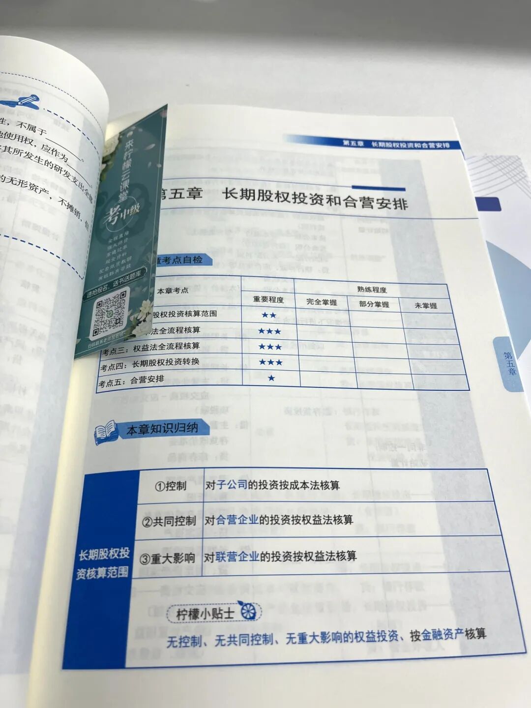 三本图书都是柠檬云课堂中级课程主讲老师和教研组精心整理,依据多年中级授课经验将全书的考点汇总整理,去除糟粕,浓缩精华,公式概念归纳汇总,最终以便于对比记忆和表格形式展示出来,重点清晰明了,特别适合考前拿来快速复习和背诵!