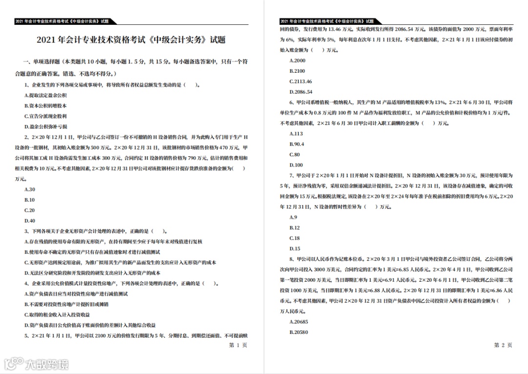 历年真题是会计考生重要的学习资料,通过对真题的演练,同学们能够更深入的掌握考试内容。