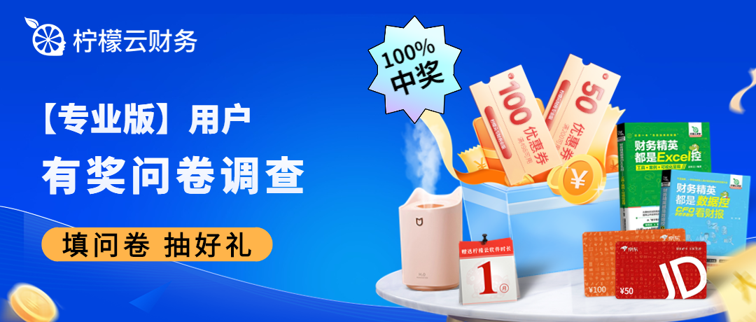 奖品说明:实物奖品请您填写正确邮寄地址,我们会安排邮寄给您。非实物奖品会给予兑换,如您抽中柠檬云财务软件专业版优惠券或赠送时长的,需要满足活动期间新购或续费的条件使用