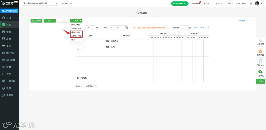 我们平时在凭证录入过程中可暂存为草稿,后续也可以从草稿中加载重新填写保存。