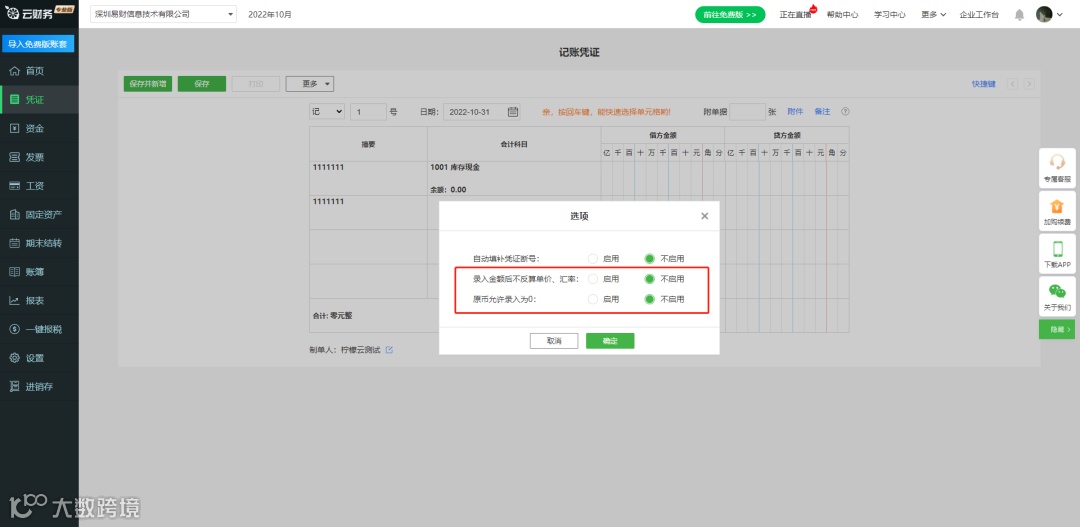 新增凭证增加【录入金额后不反算单价、汇率】、【原币允许录入为0】两个选项