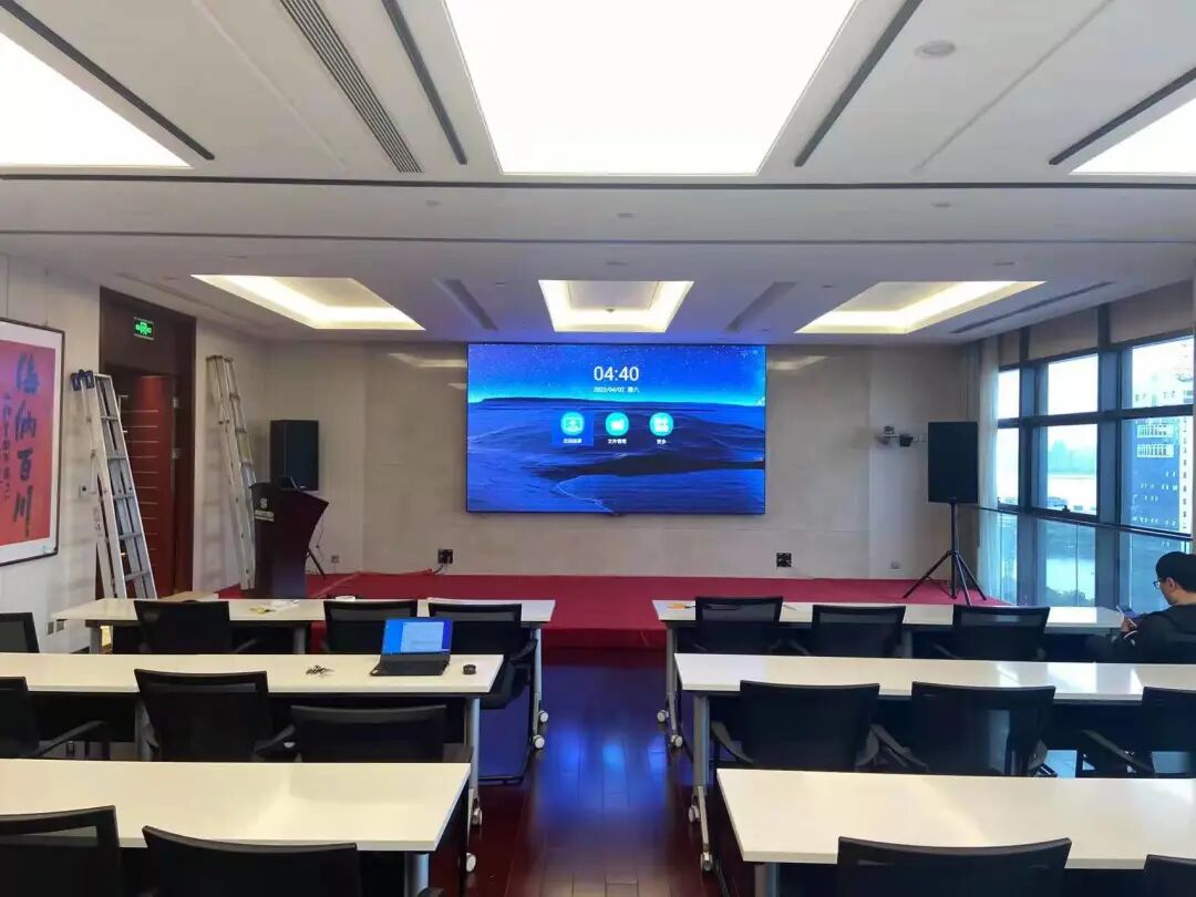 此外,我们在产品尺寸选择上也更为“贴心”,通过提前对安装现场的空间大小及布局进行评估,从而确保LED会议一体机尺寸恰可以满足银行会议室20~50人会议沟通及培训正常使用。