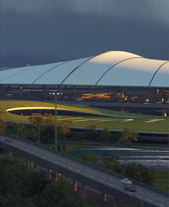 新航站楼设计高度关注自然与创新科技张弛有力的配合,营造舒适、自然的 “花园机场” 。