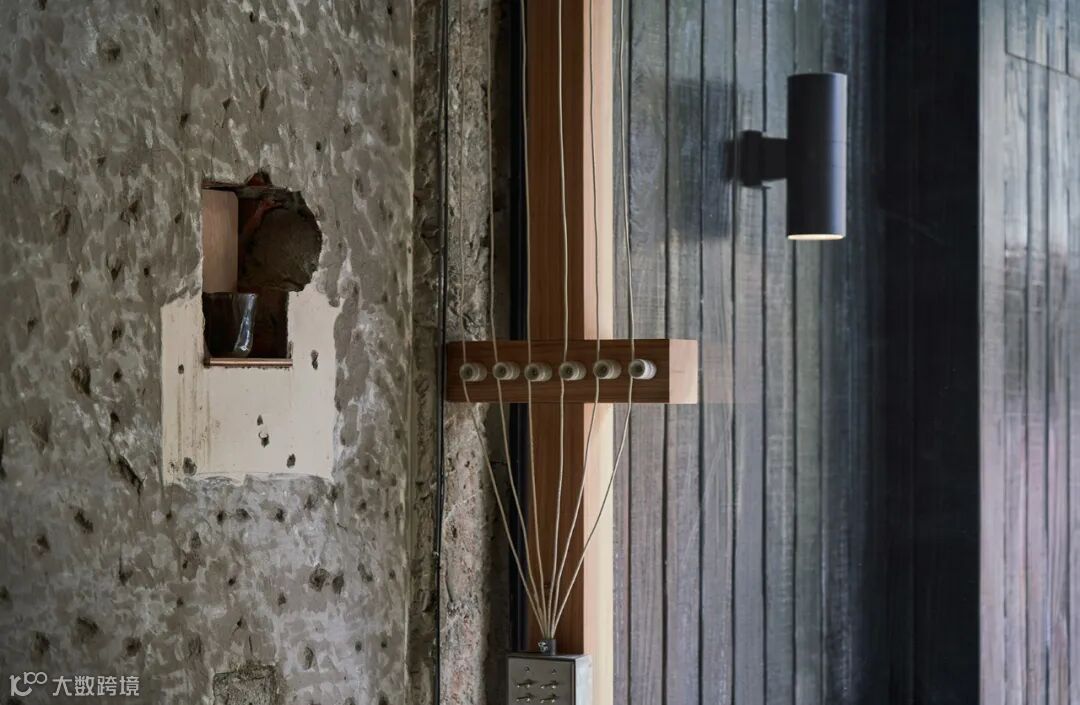 为了保留了老屋因为岁月留下的斑驳质感,呈现出视觉、触觉丰富的表面,设计师搭配大面开窗引进阳光与空气,光线与气流打在不同质感的墙面上,呈现“会变动”质感与感受,借此向自然致意,也呈现老屋最自然不加装饰的“裸空间”本质质感。