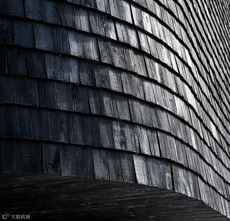 烧杉板(Shou-Sugi-Ban焼き杉)是日本传统的木质材料之一,历史可以追溯到1700年,主要是采用烈火焚烧的方式对其表面进行处理,经过炭化、清洗、上油等步骤形成的具有防火防潮、防腐防虫的板件。