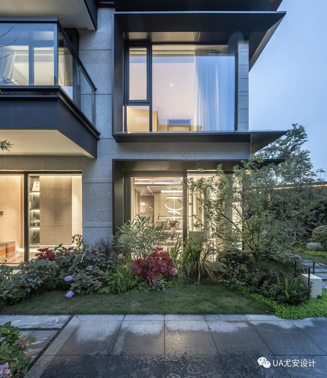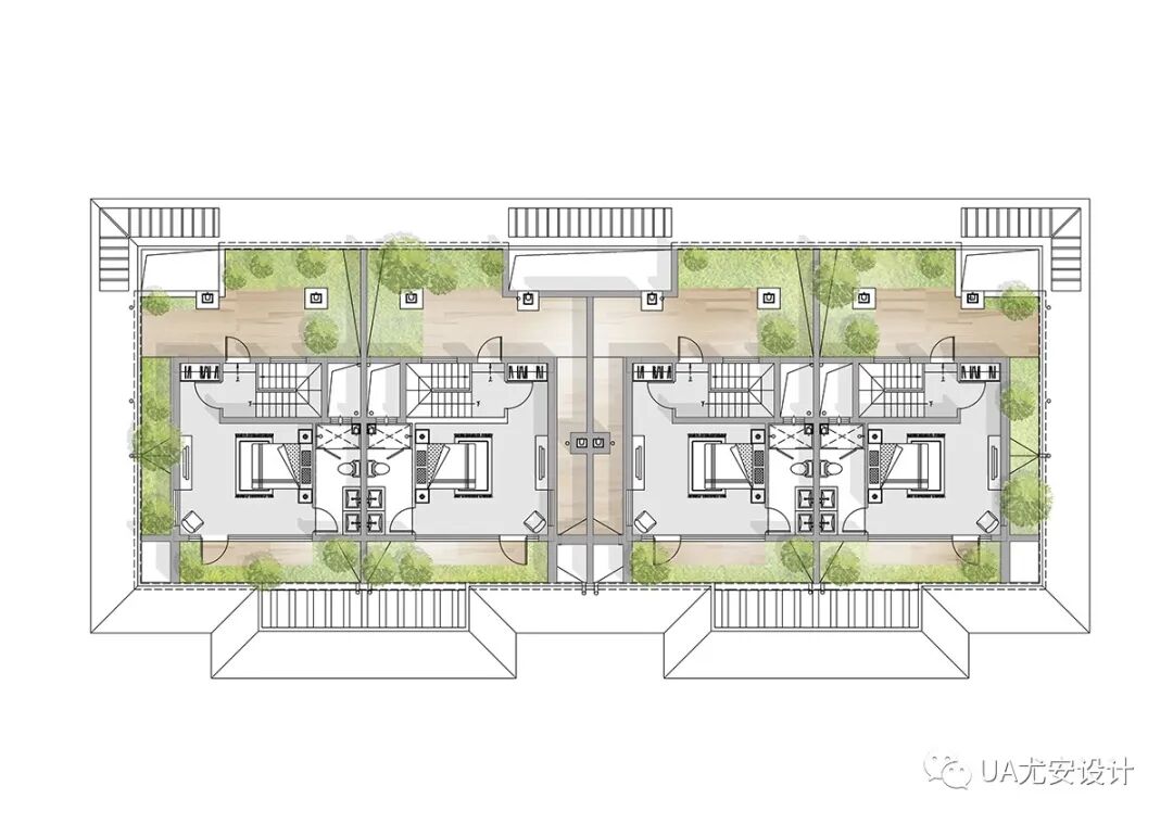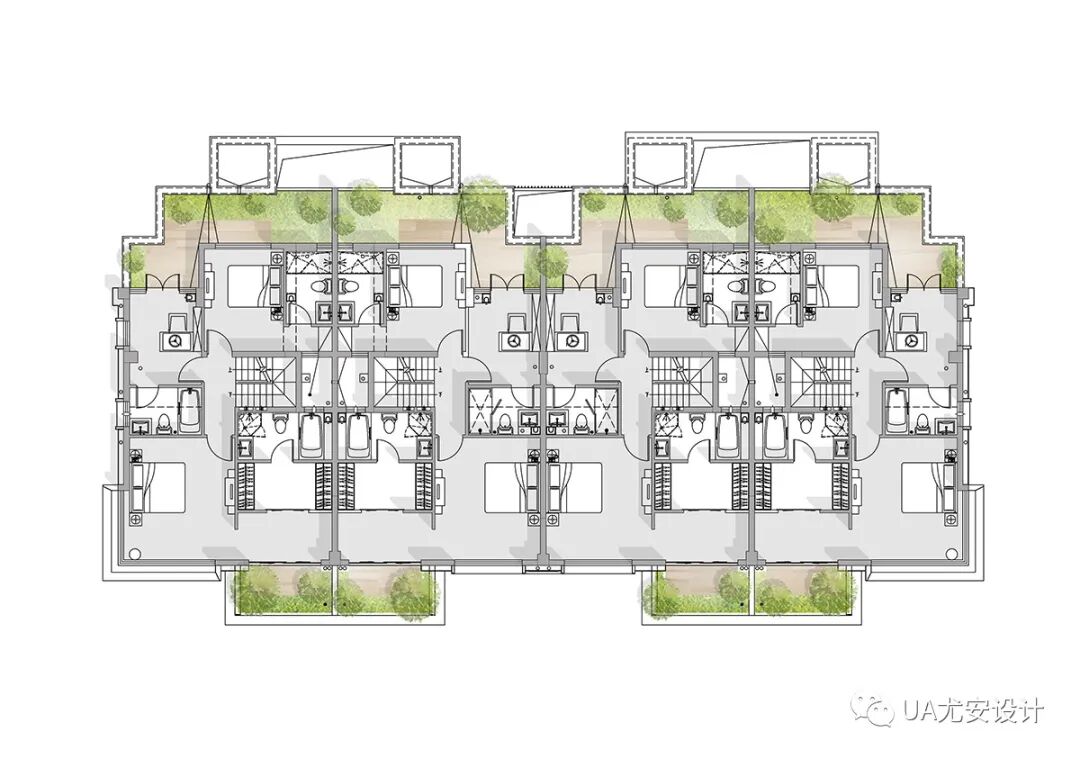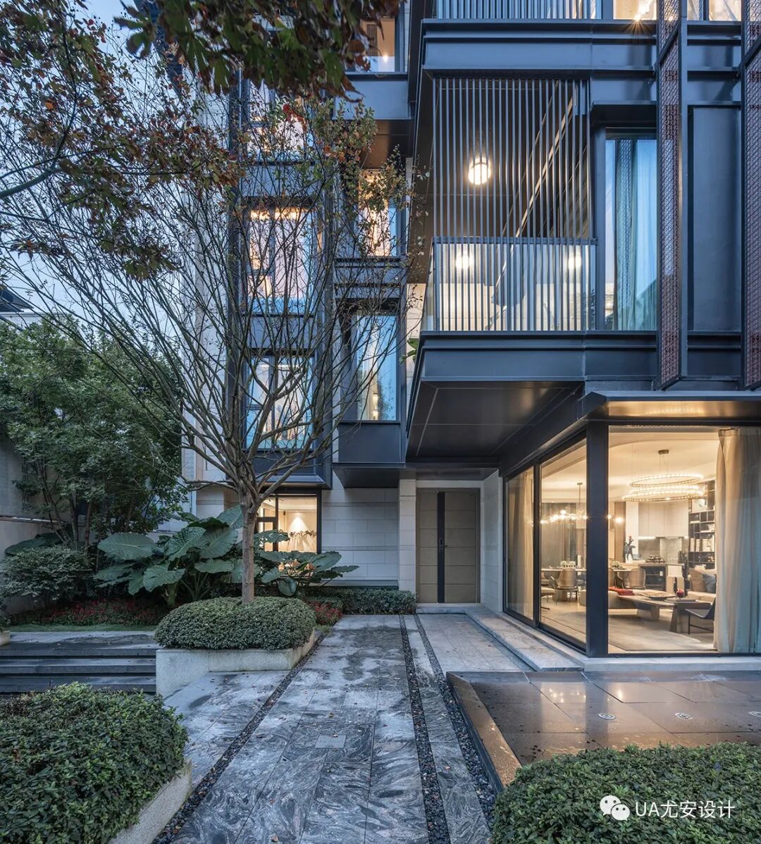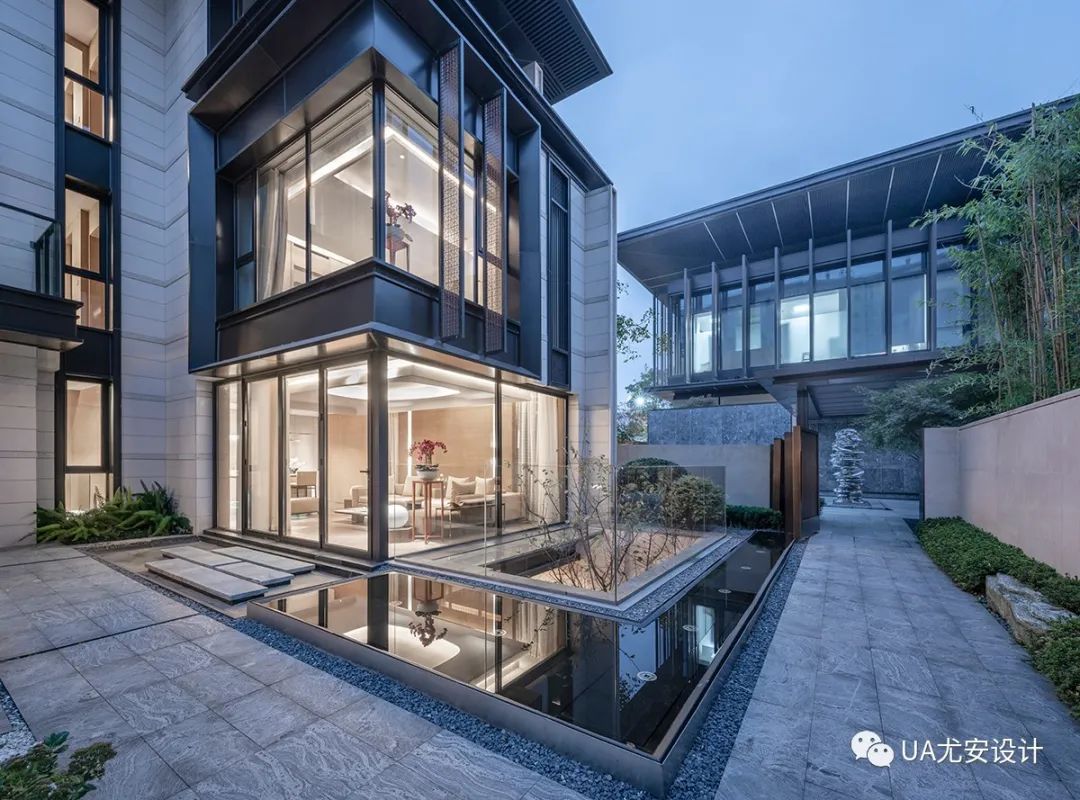 设计不仅在立面造型手法上打破建筑与庭院间的界限,更通过对合院型产品内部空间的研究,以多层的院落和露台,极致地方大与自然景观互动的参与度,进一步为居住者提供私属的生态居住感受。