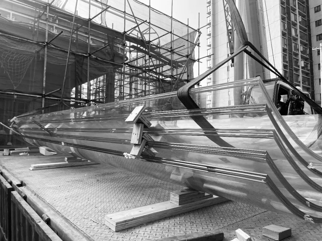 玻璃幕墙使建筑具有了透明性和轻盈感,弯钢玻璃的出现满足了现代美学对于作品的更高要求,其光滑的流线型实现了从平面幕墙到弧面玻璃幕墙的完美过渡,使玻璃幕墙运用于建筑更具圆滑平整,自然良好的整体感。