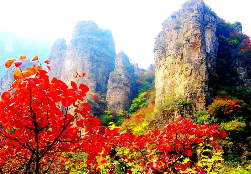 狼牙山真的如儿时的印象里的一样美吗?是。甚至还远远超出。如果驱车前往狼牙山旅游区,未到景区,先有惊喜。奇峰罗列,悬崖峭立,直刺云表。棋盘坨,五指峰,莲花瓣,大连坨,蚕姑坨。一座座竞相耸立,似一柄柄长剑,又状若狼牙,突兀峥嵘,令人惊叹不已。