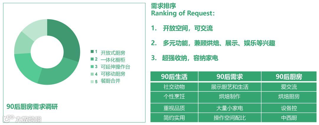 现在年轻人的生活方式,如健身餐、早餐空间、水果空间或亲子陪伴等无油烟操作,使得他们需要一个新的操作场景更喜欢半开放式厨房。