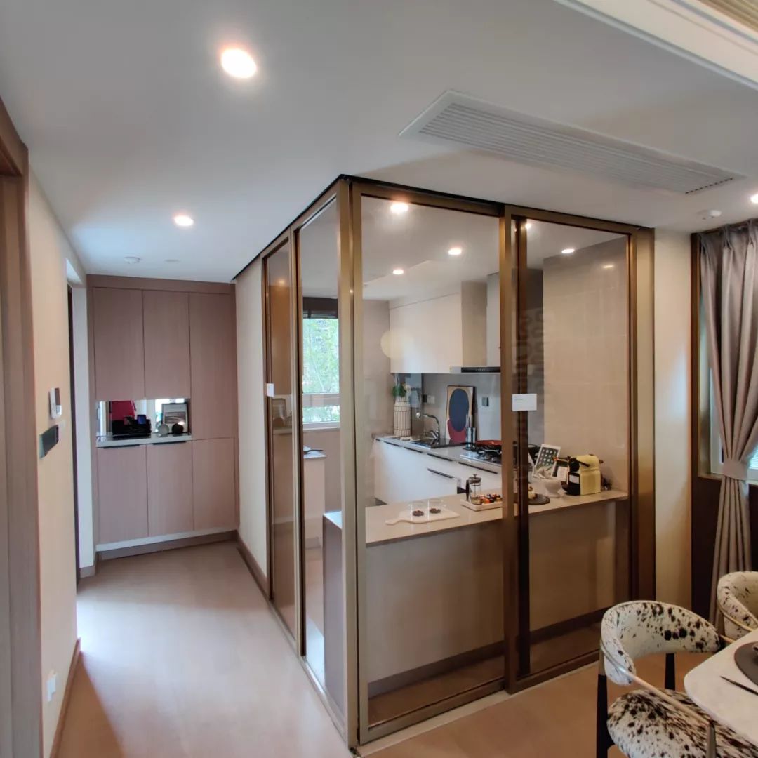 整体的两侧都做了移门,在实现了空间通透性之后,厨房依然可以保持可分可和的存在,丝毫不影响未来的实际使用。